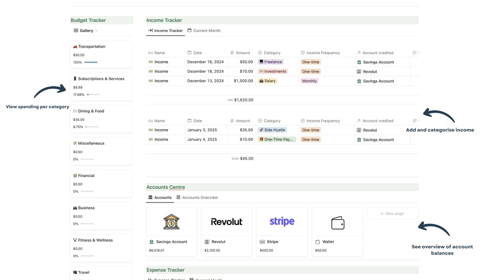 • Customisable: Tailor it to your unique financial needs with flexible categories and views.