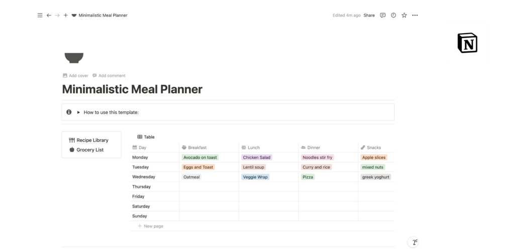 Minimalistic Meal Planner – Your All-in-One Meal Planning Solution